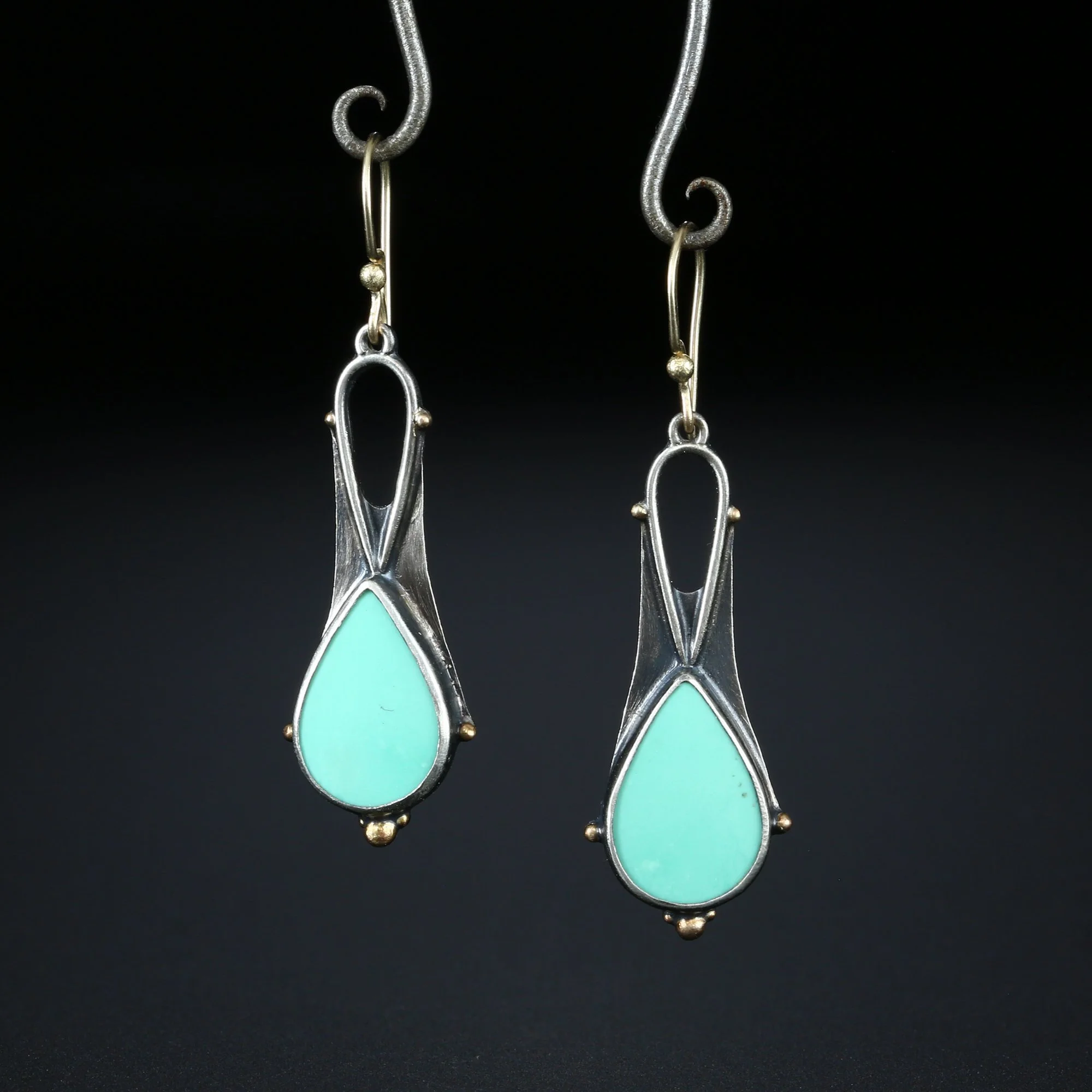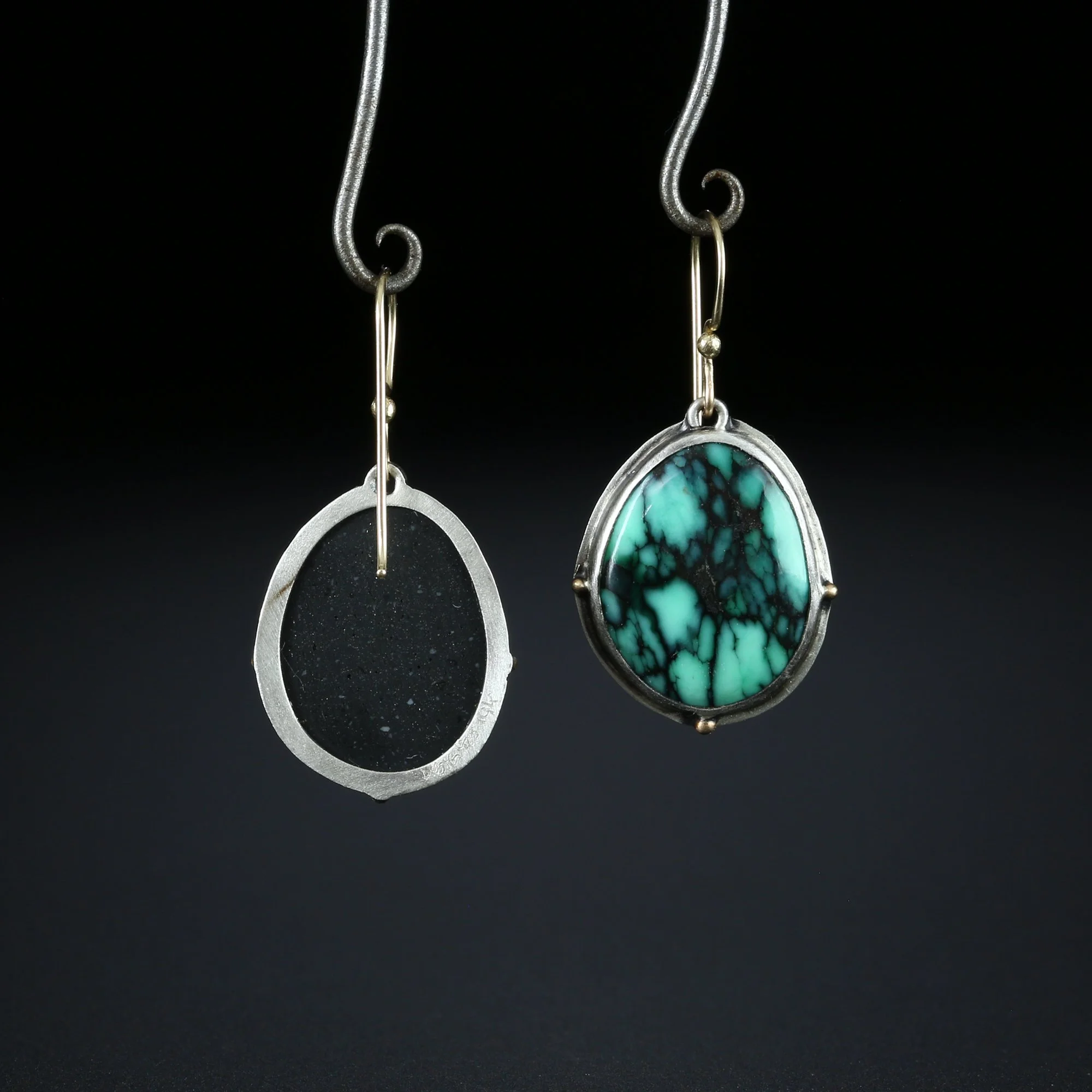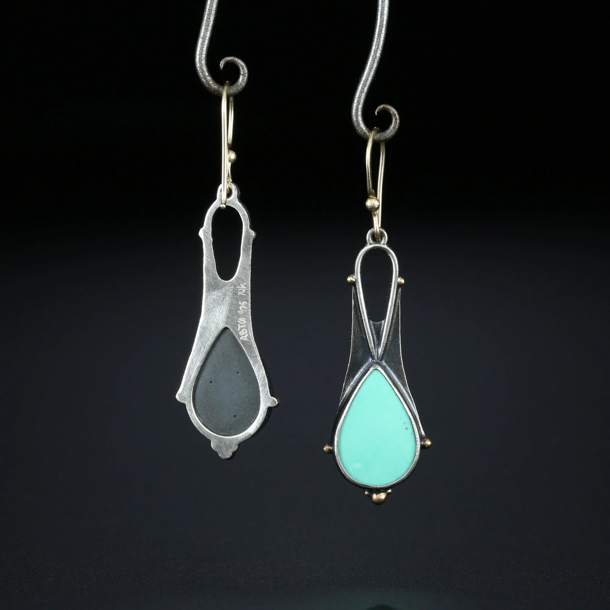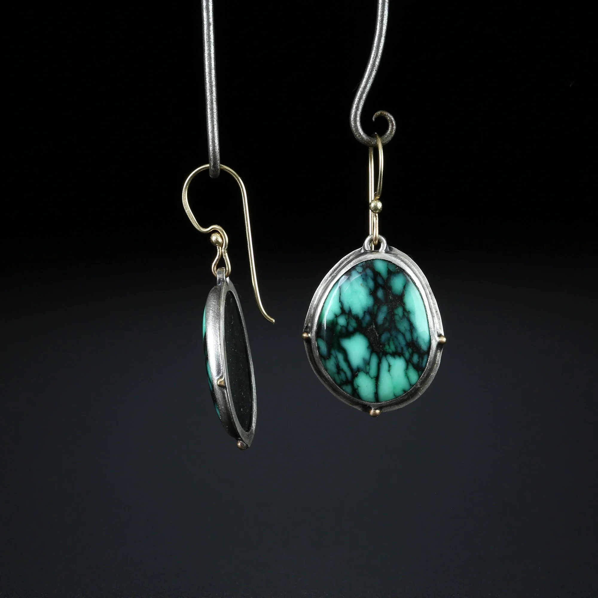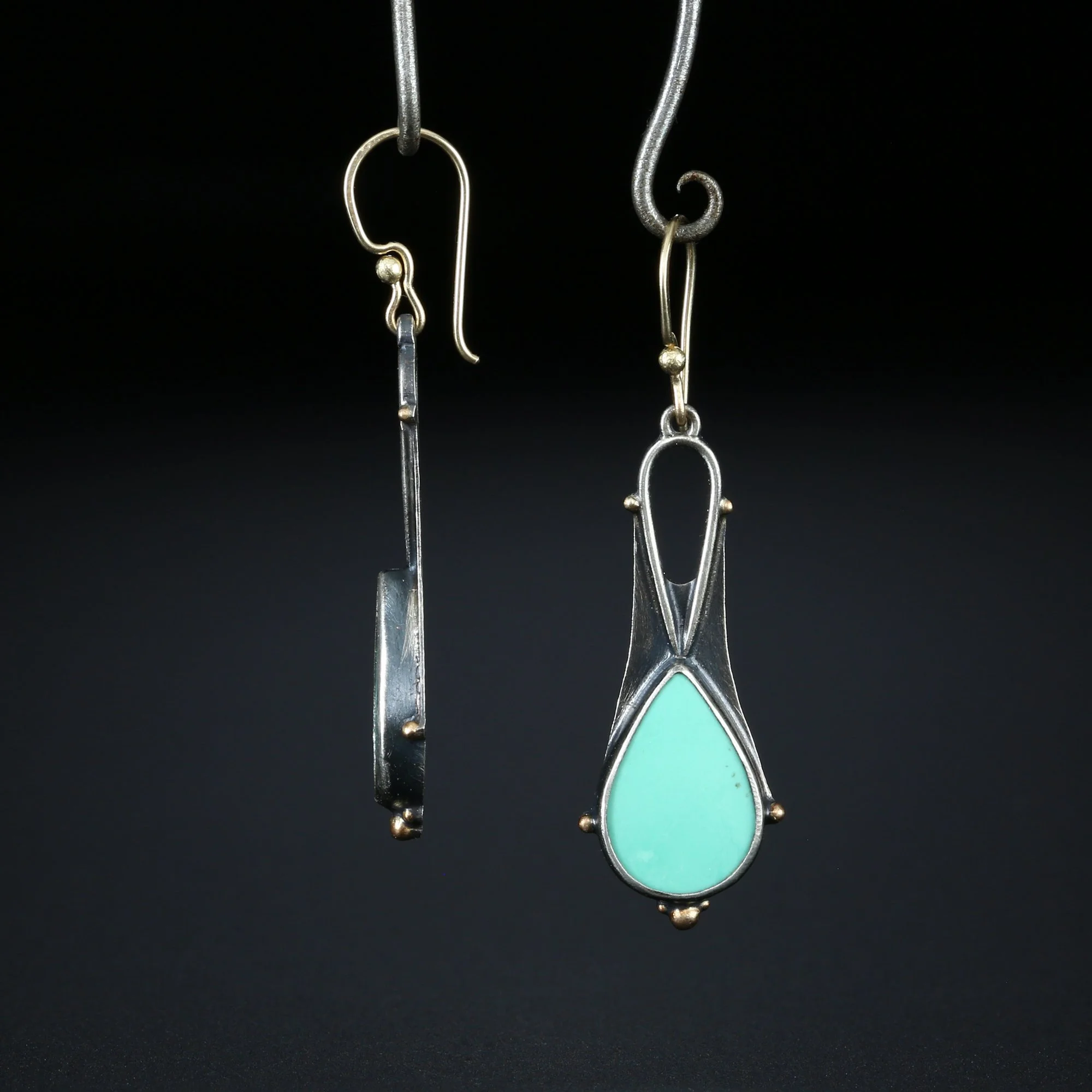 We fabricate our earrings using spectacular paired stones, sterling silver, 22k, 18k and 14k gold. Our ear wires are almost always fashioned with handmade 14k gold or sterling silver French hook ear wires.