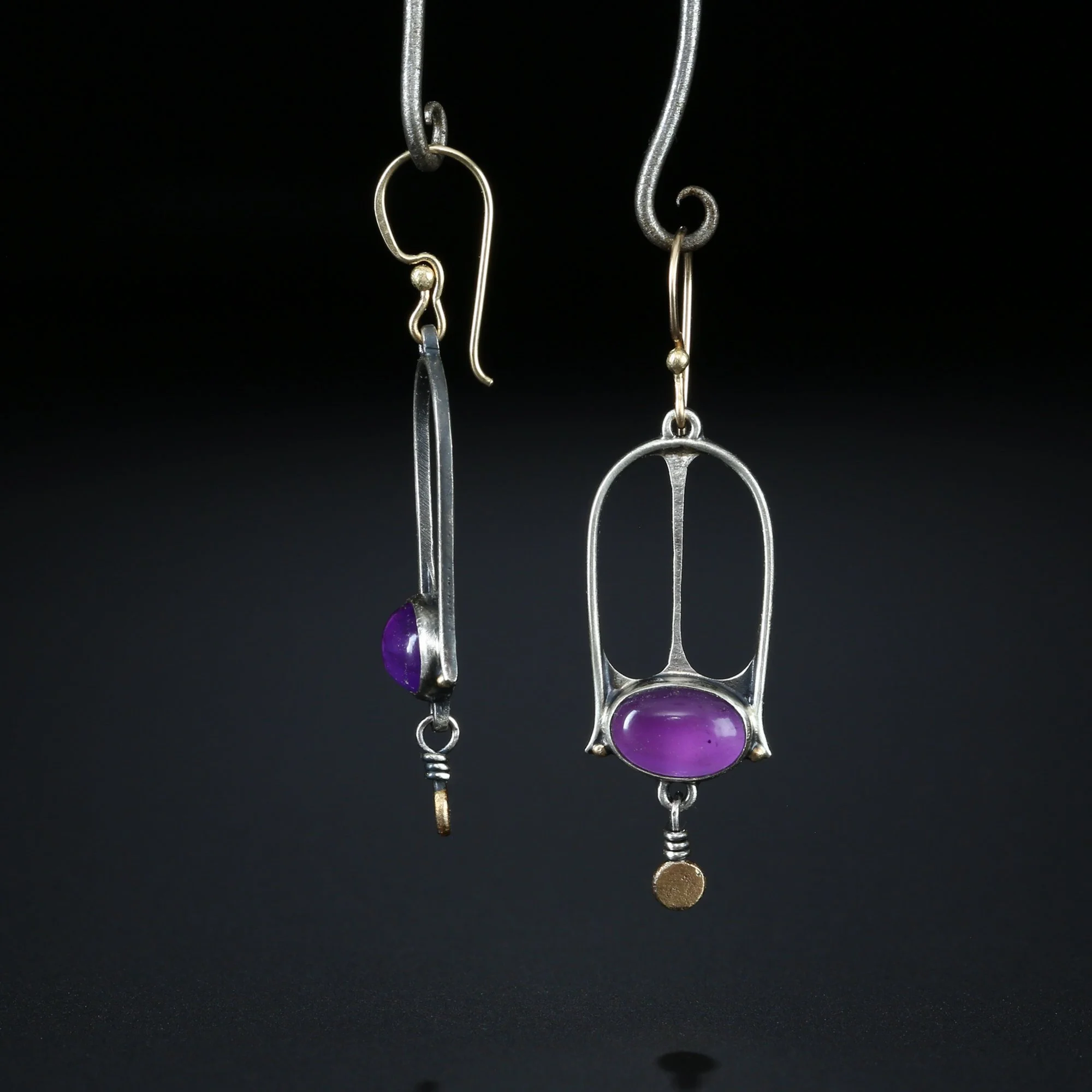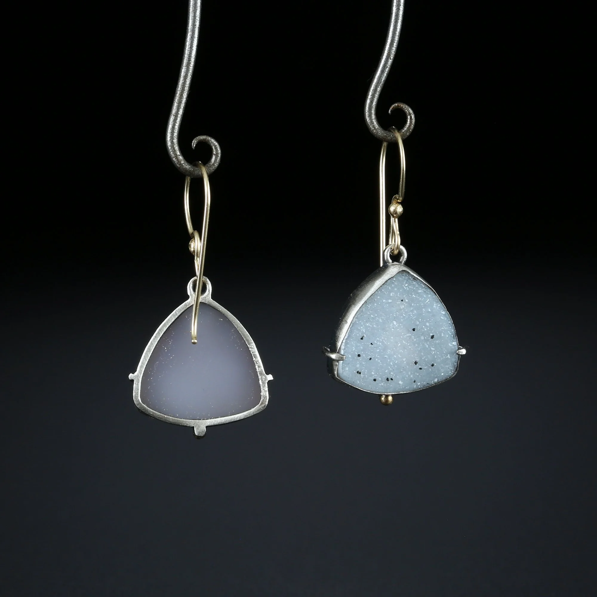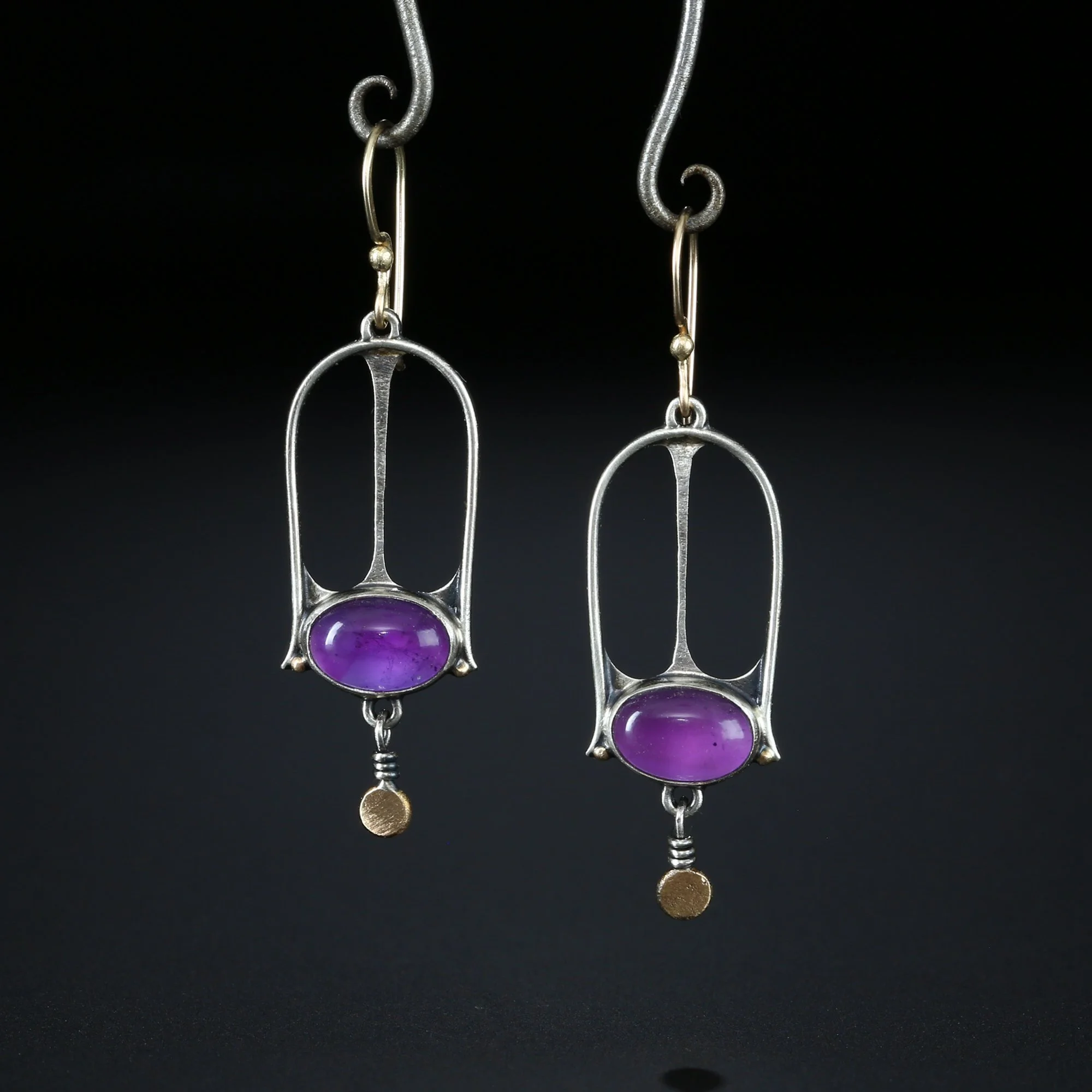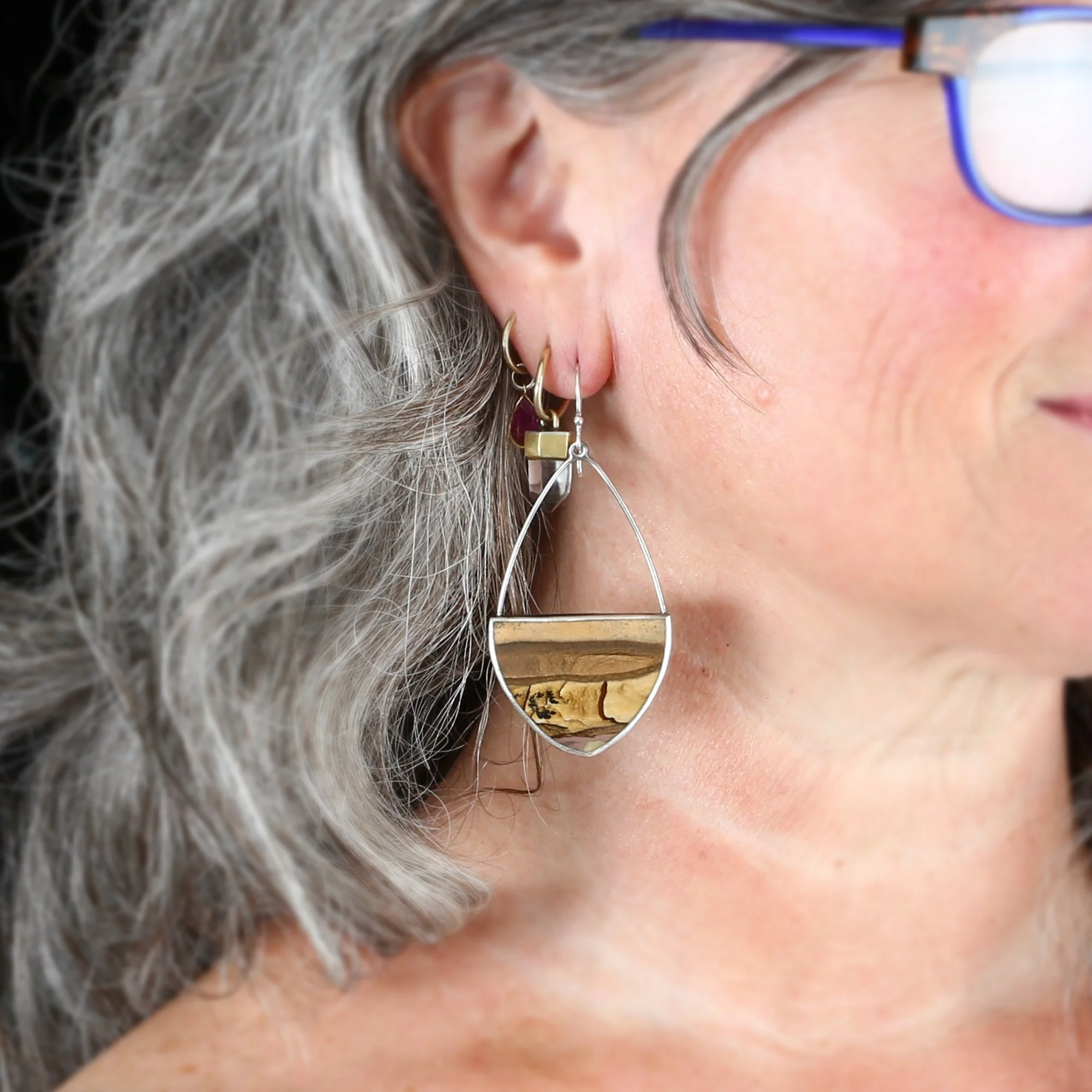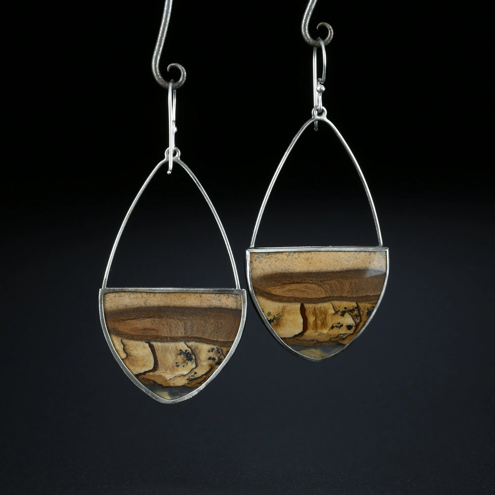 We fabricate our earrings using spectacular paired stones, sterling silver, 22k, 18k and 14k gold. Our ear wires are almost always fashioned with handmade 14k gold or sterling silver French hook ear wires.
