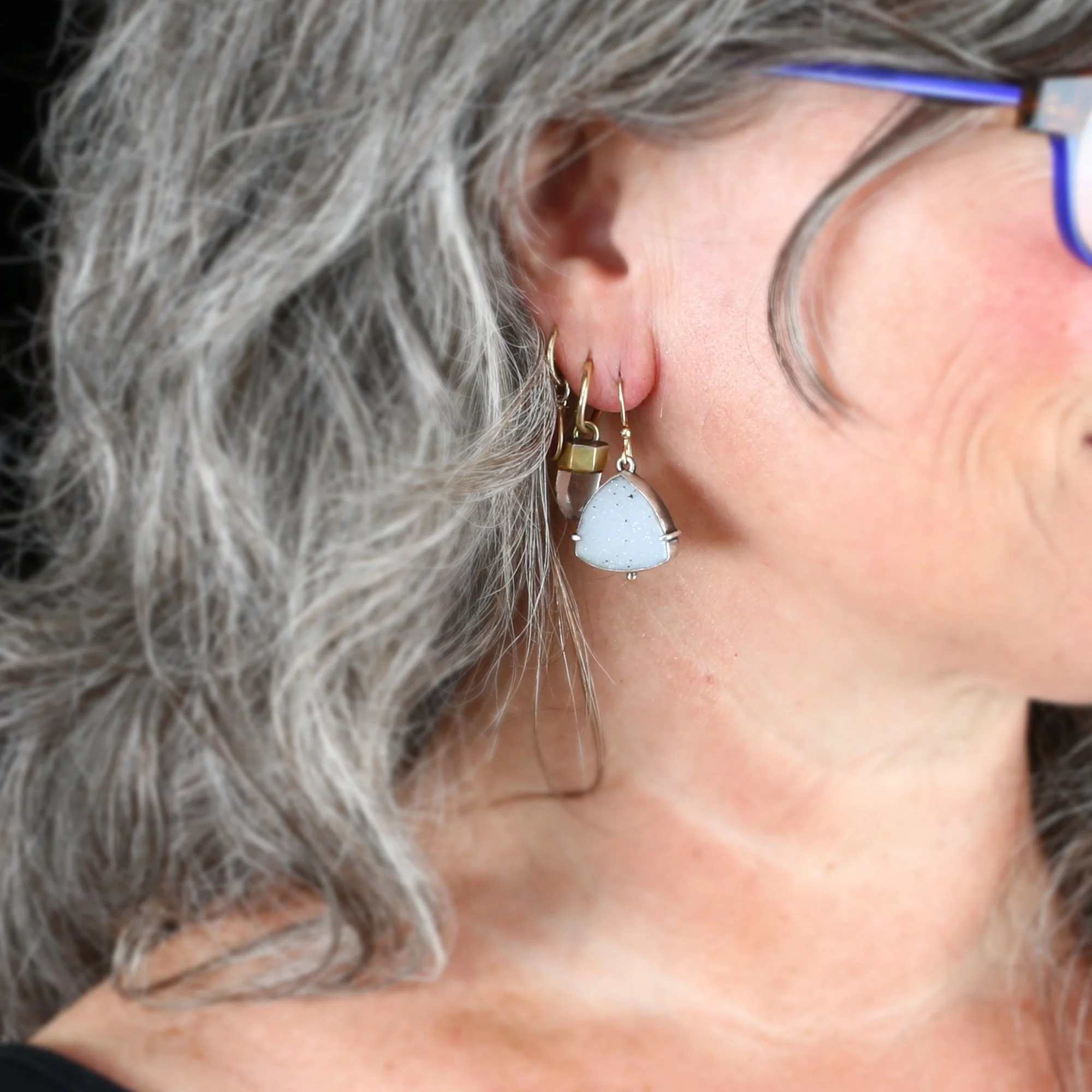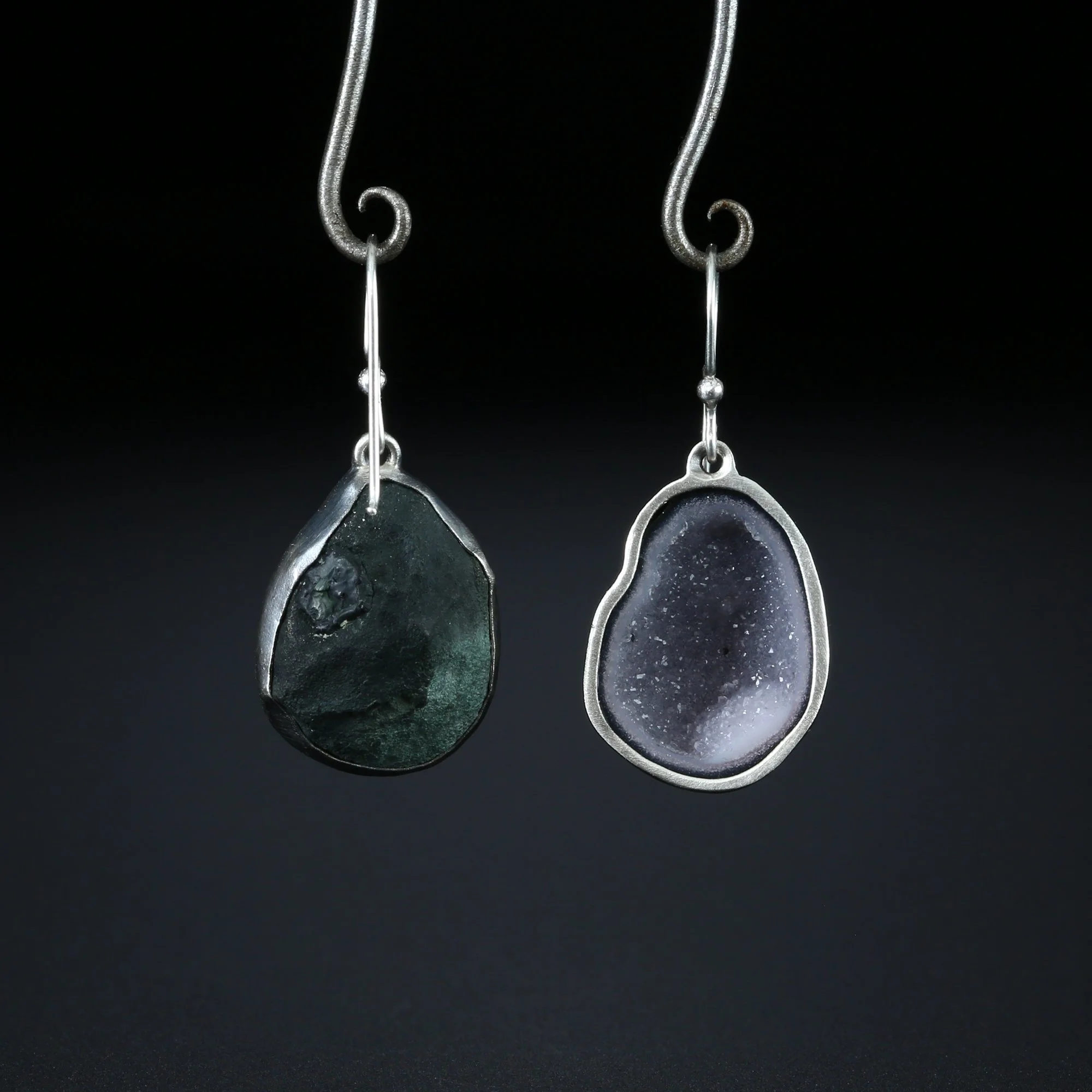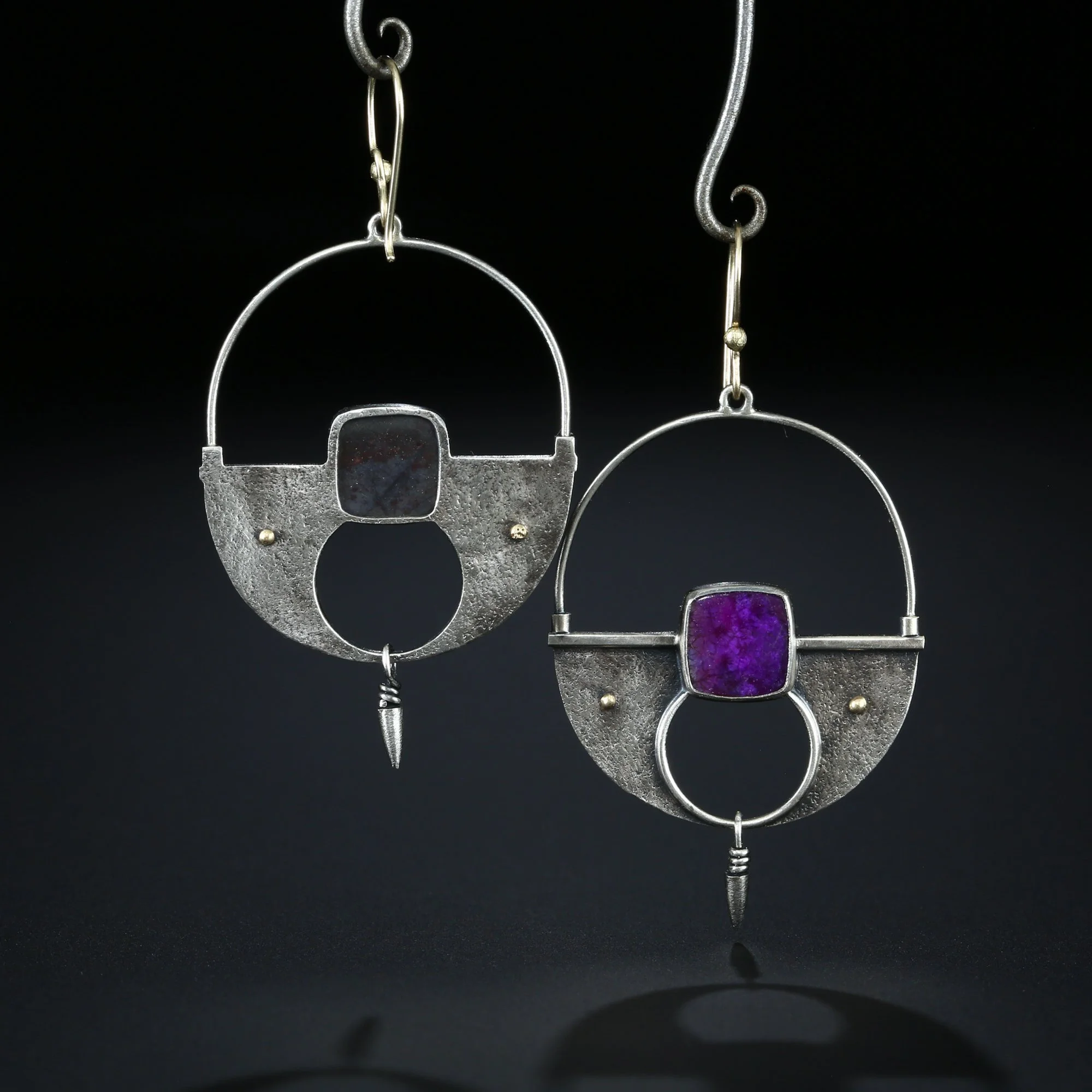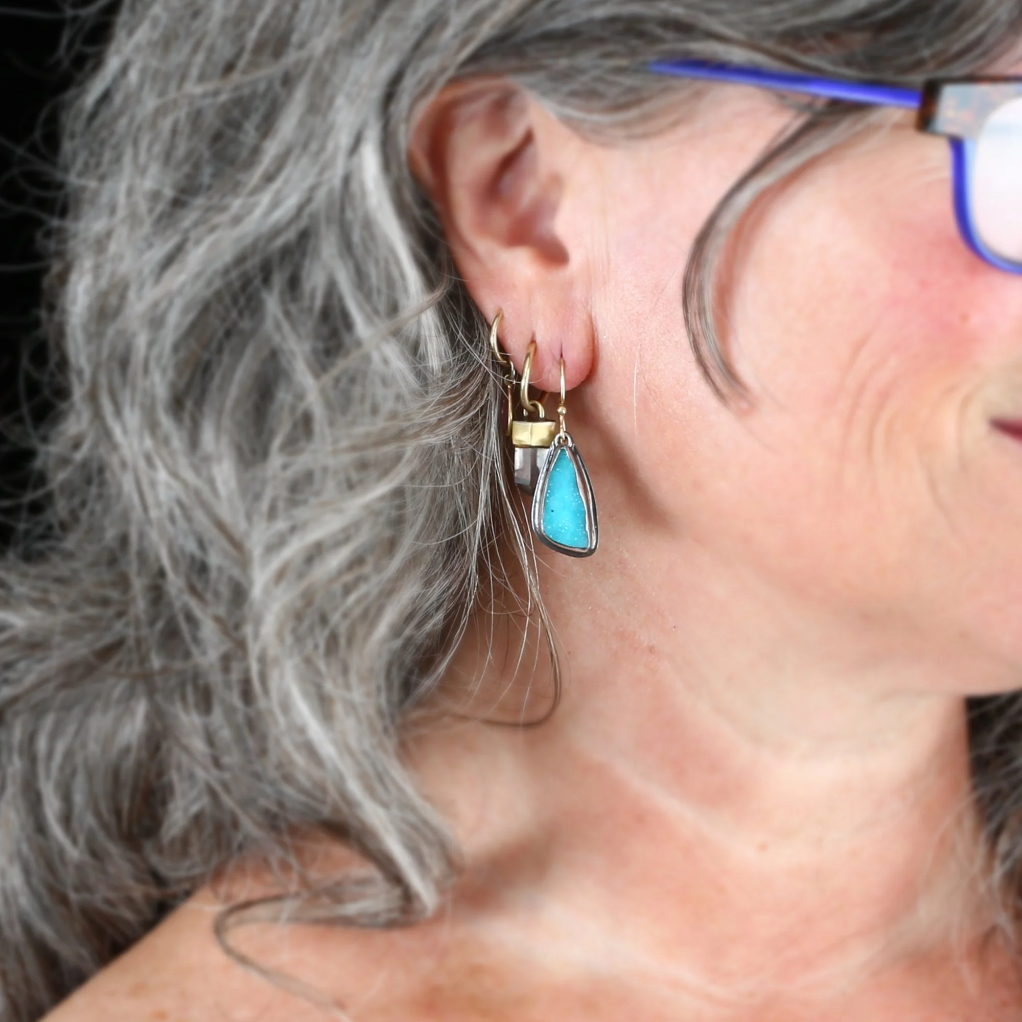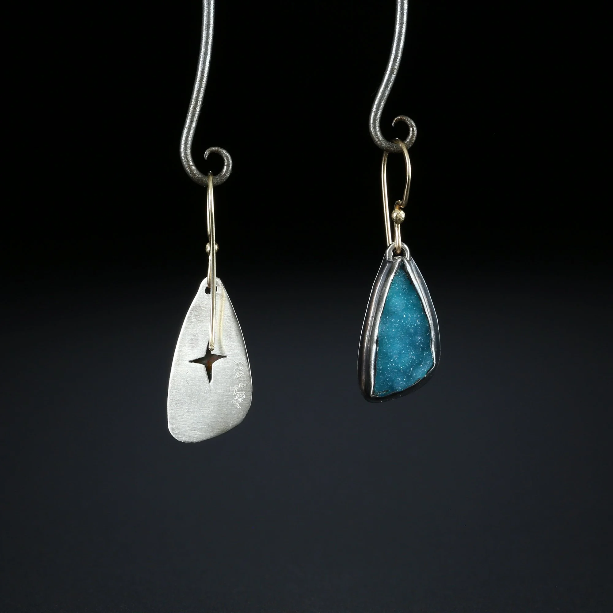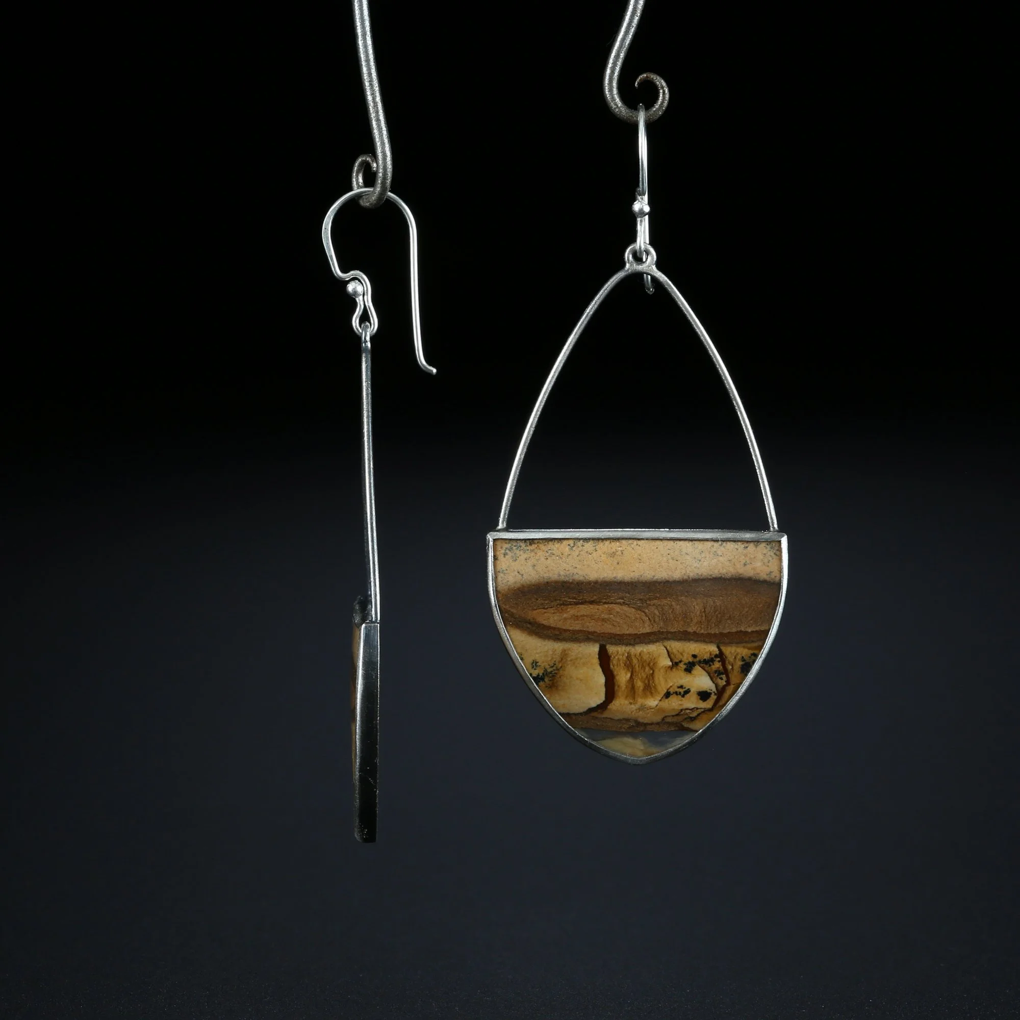 We fabricate our earrings using spectacular paired stones, sterling silver, 22k, 18k and 14k gold. Our ear wires are almost always fashioned with handmade 14k gold or sterling silver French hook ear wires.