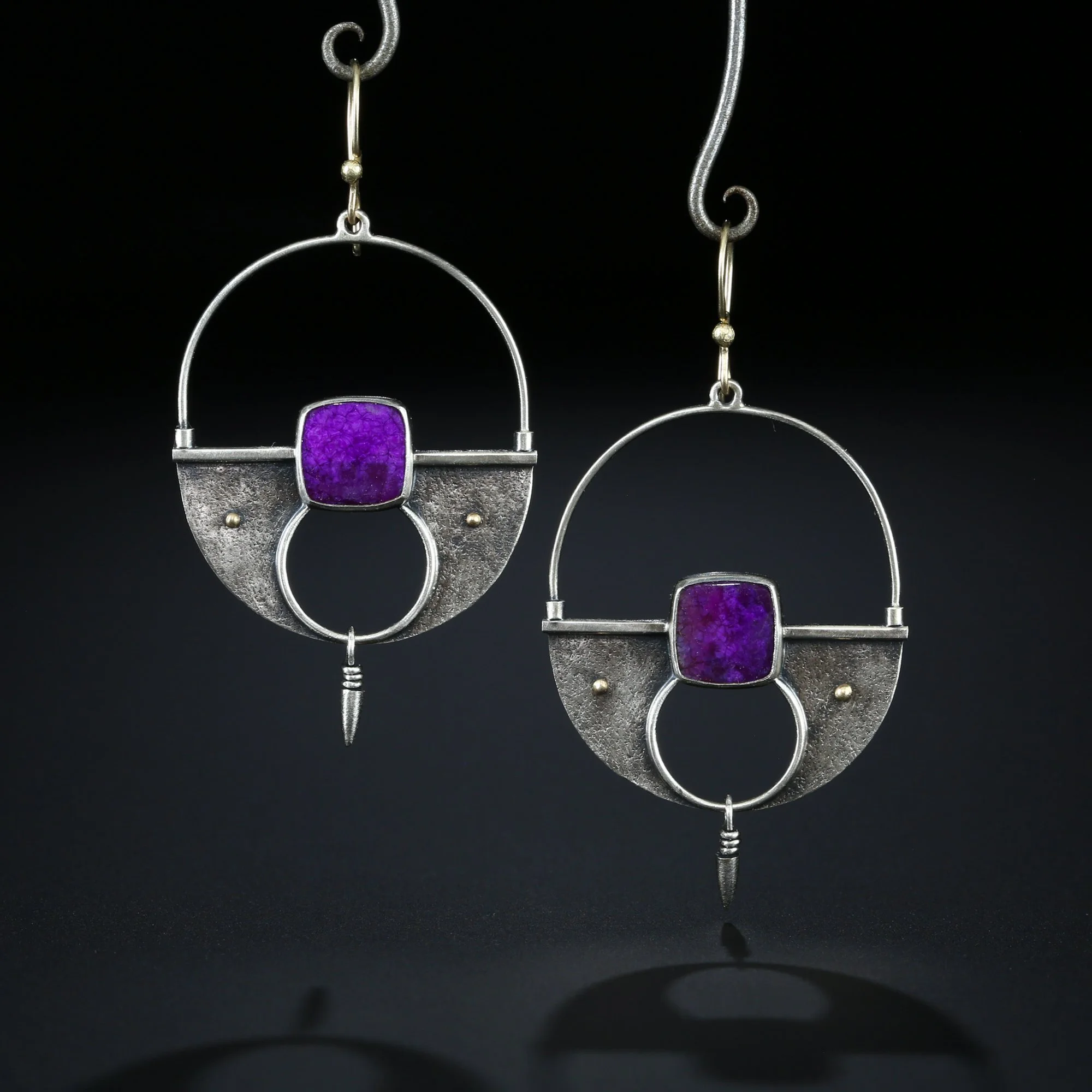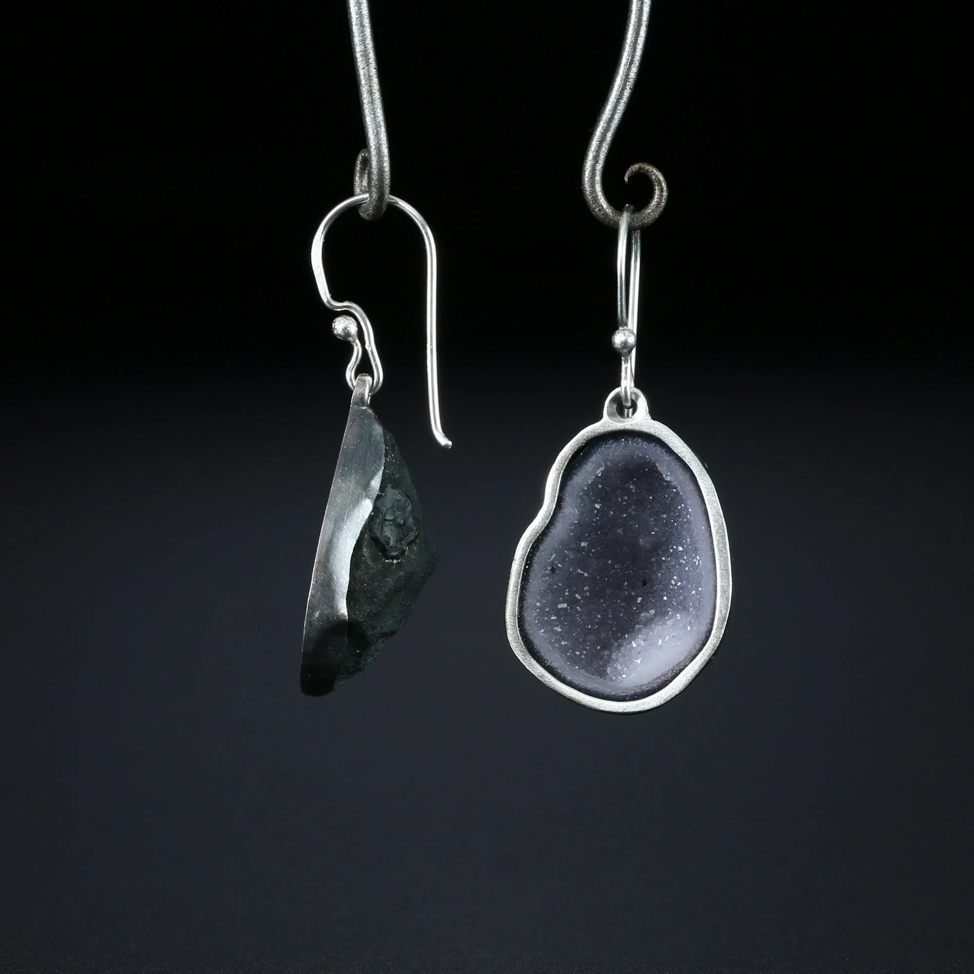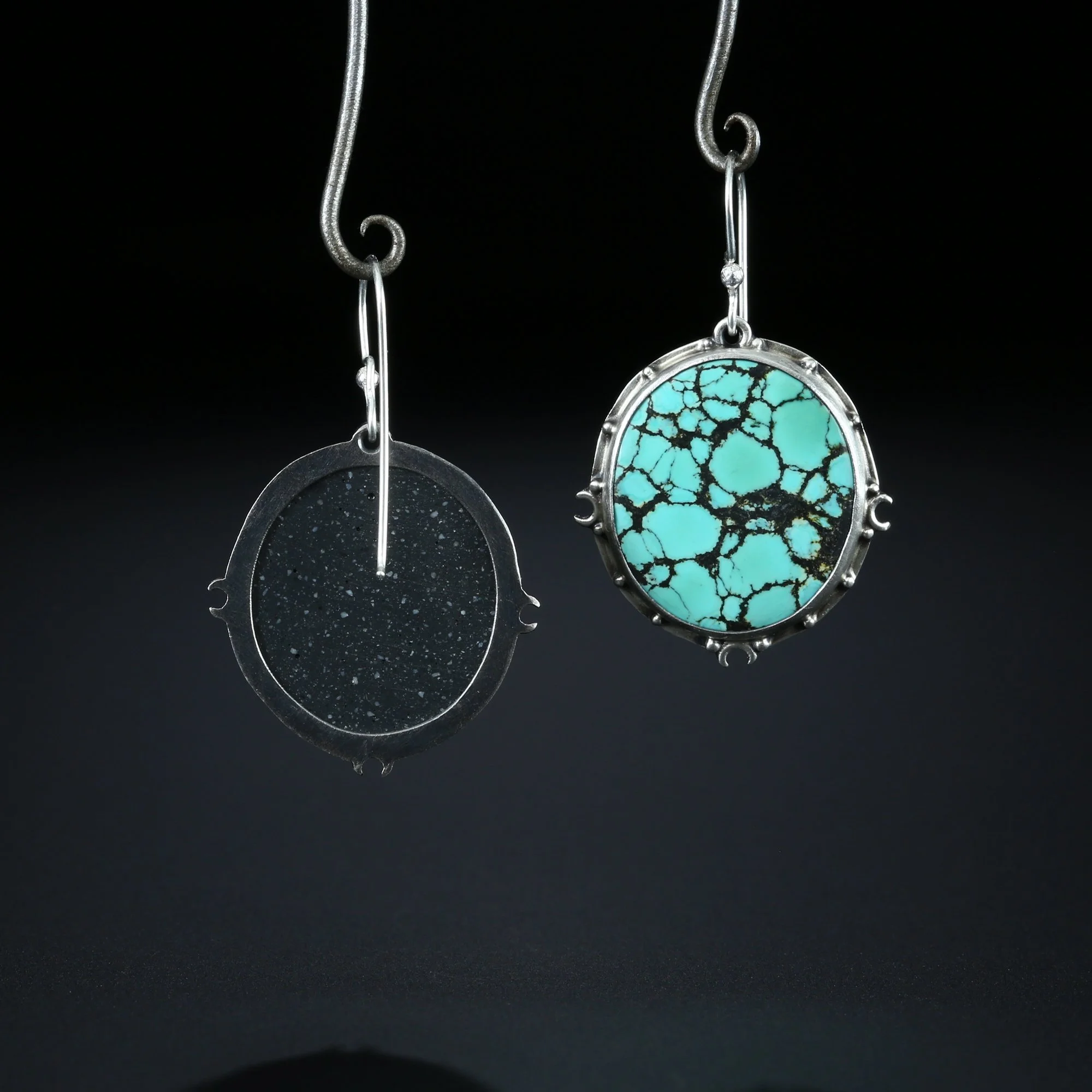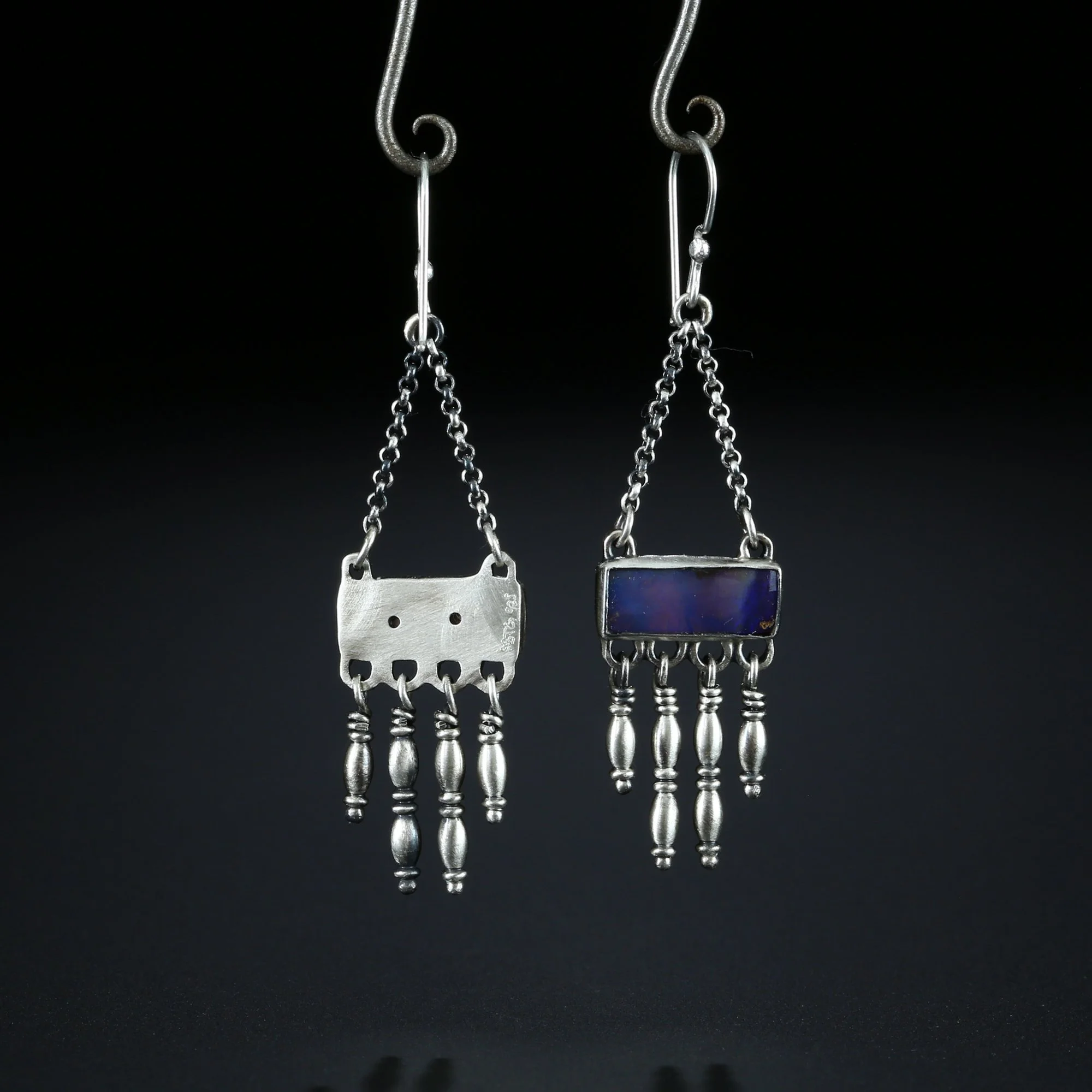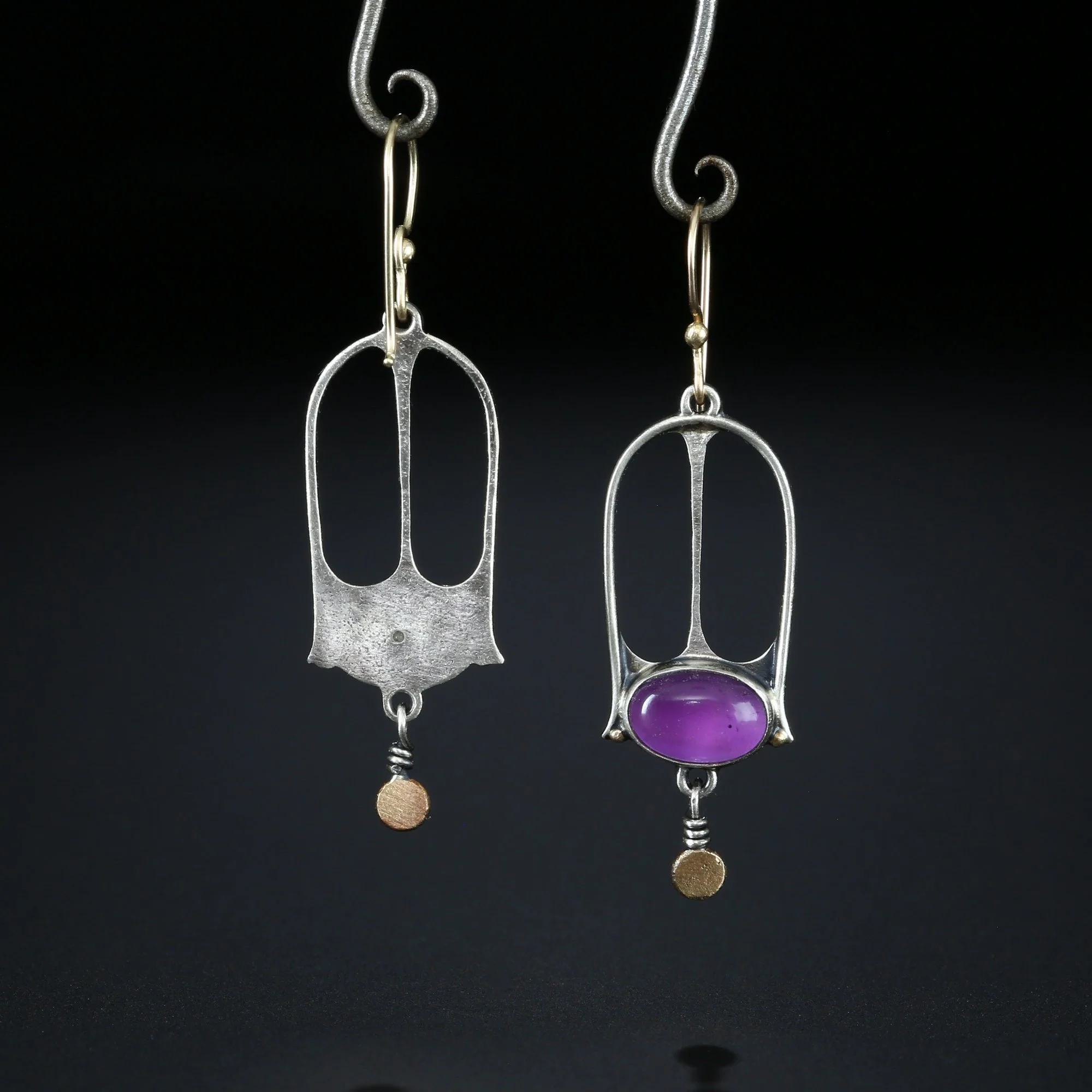 We fabricate our earrings using spectacular paired stones, sterling silver, 22k, 18k and 14k gold. Our ear wires are almost always fashioned with handmade 14k gold or sterling silver French hook ear wires.