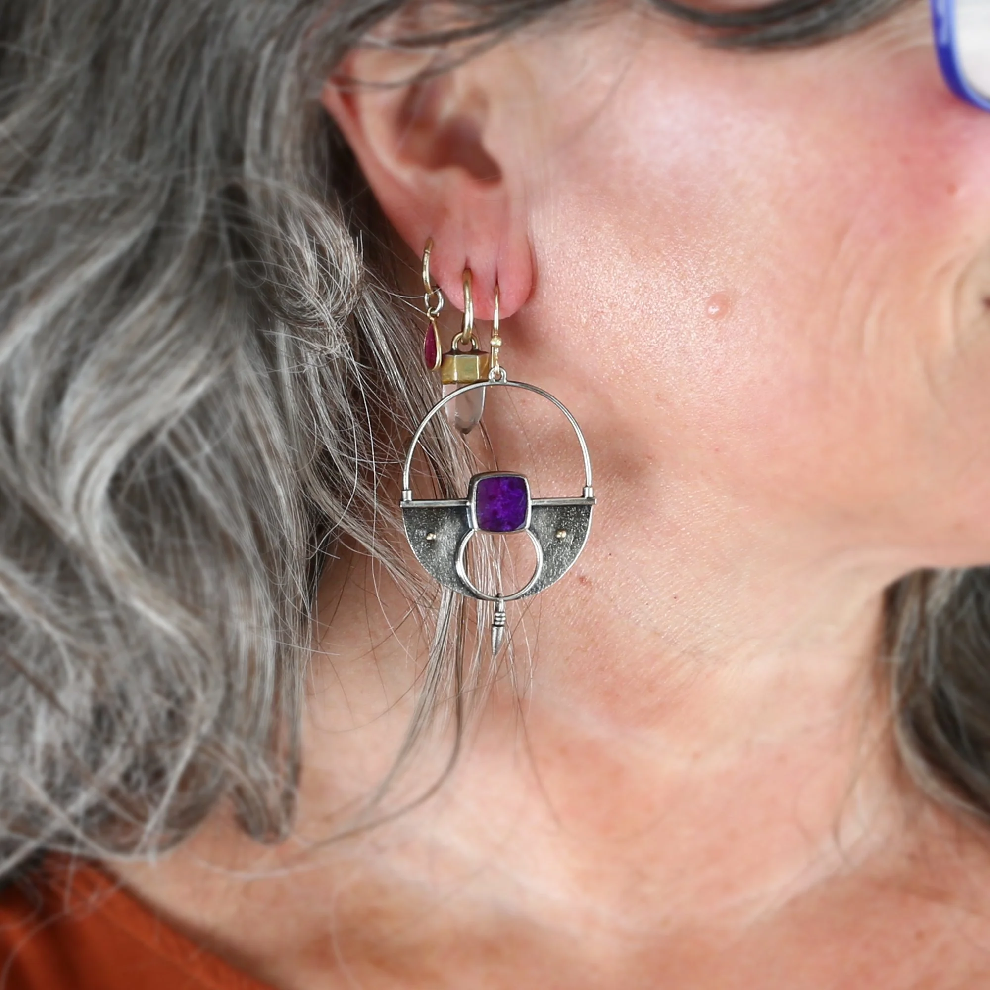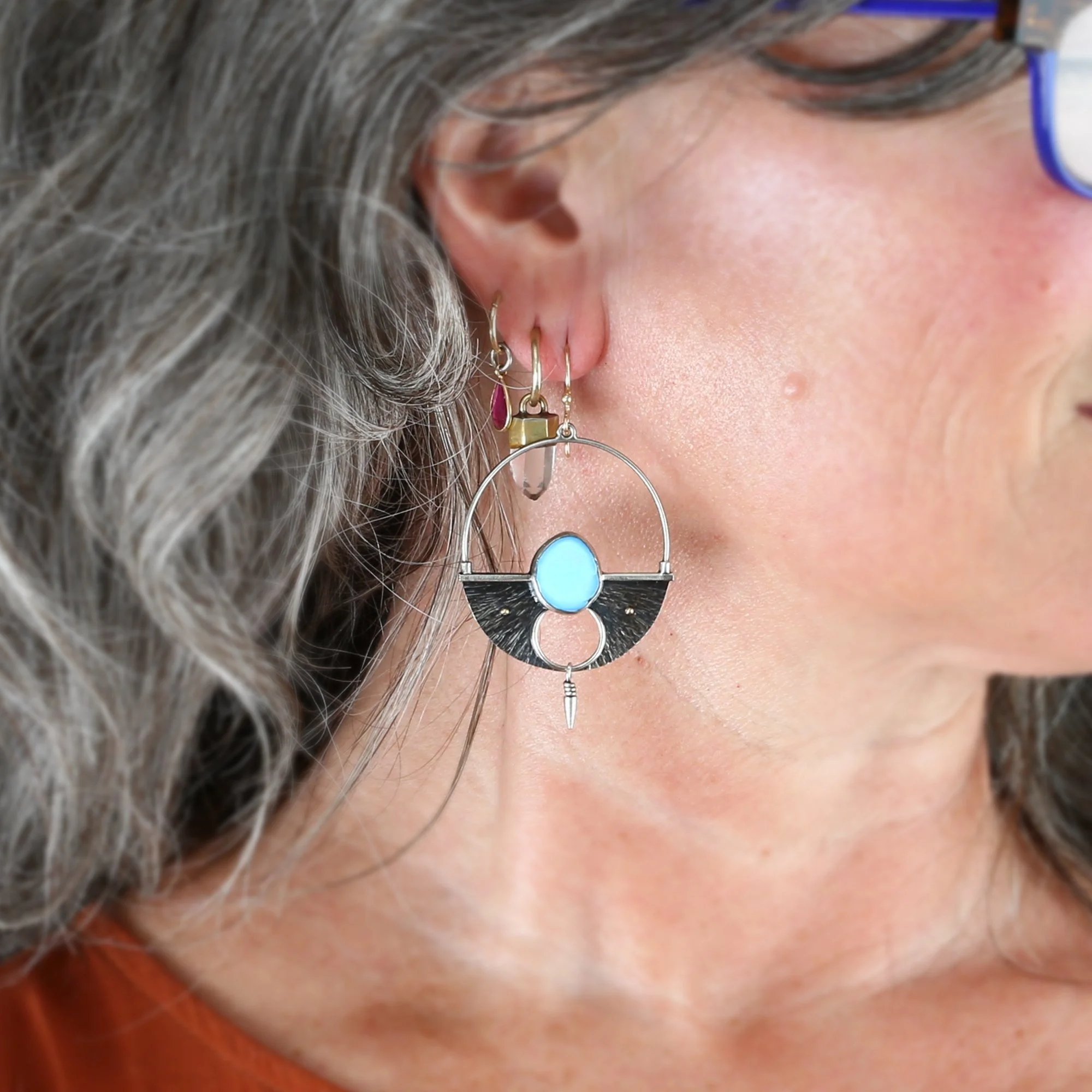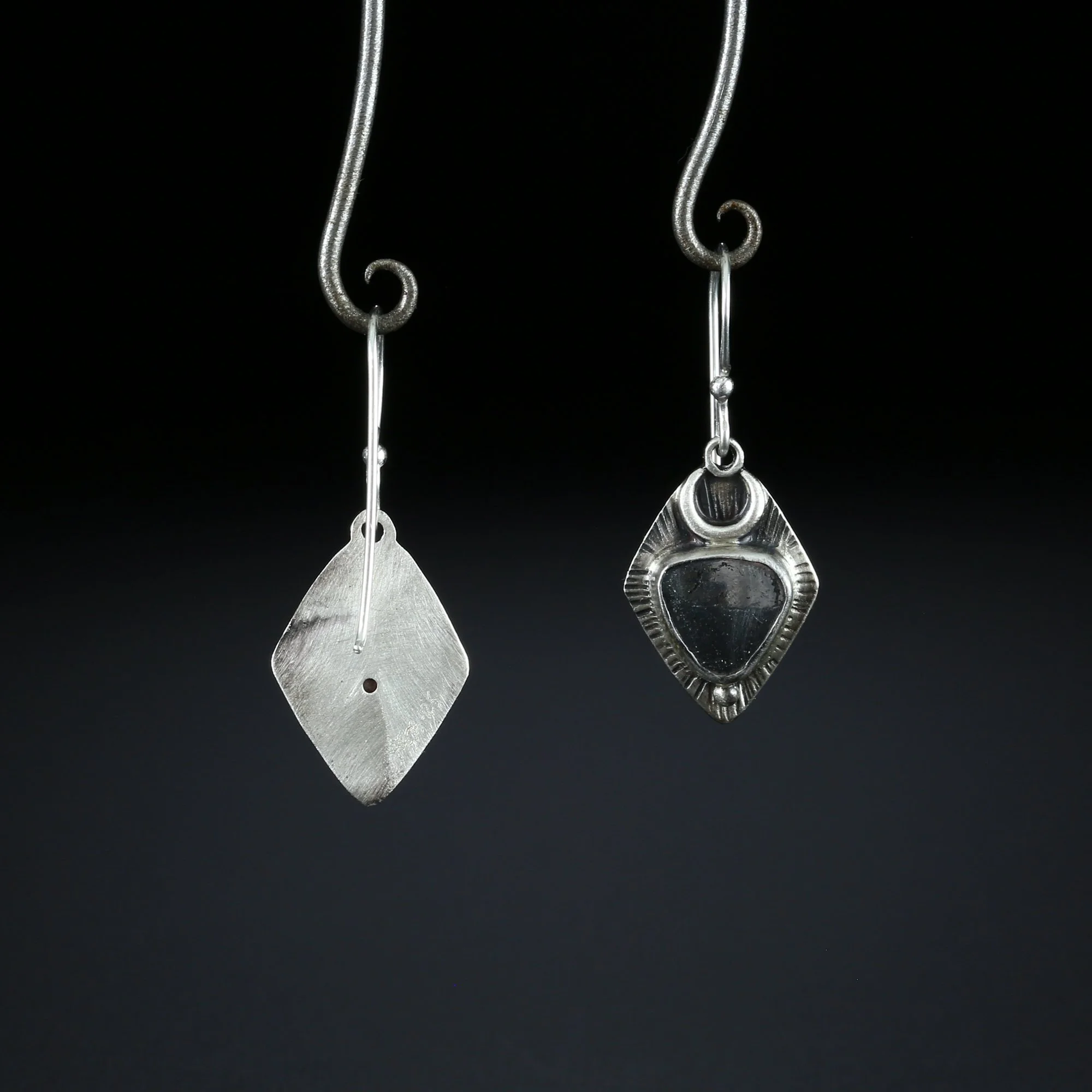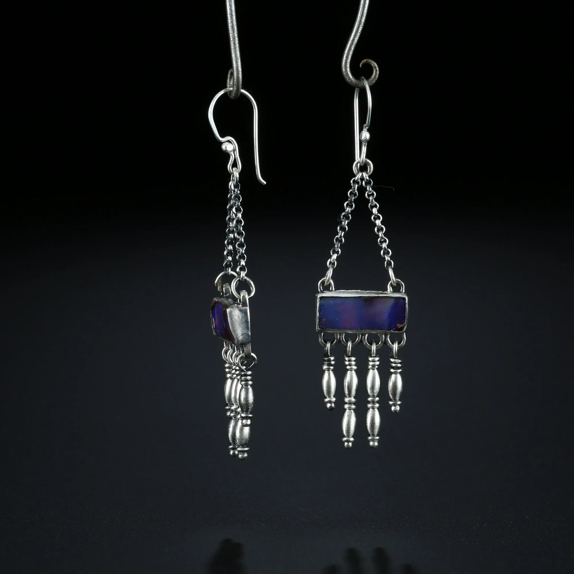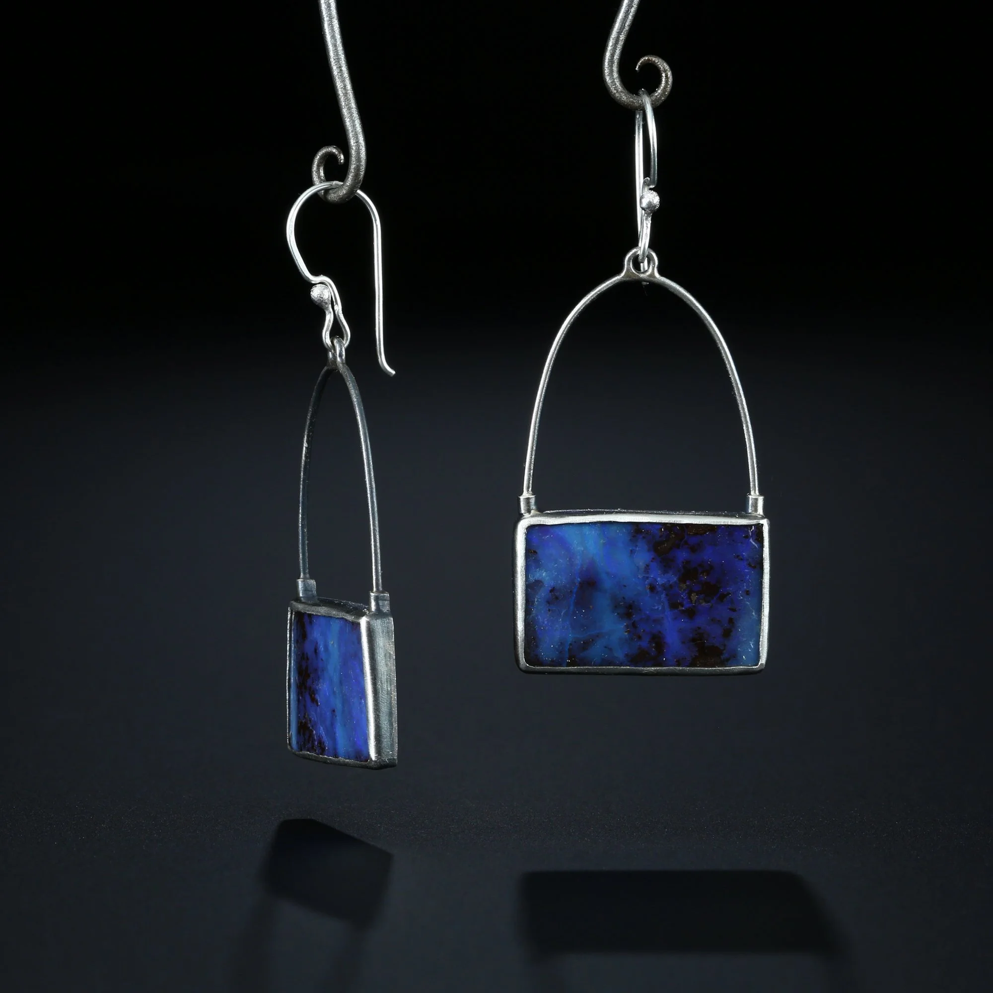 We fabricate our earrings using spectacular paired stones, sterling silver, 22k, 18k and 14k gold. Our ear wires are almost always fashioned with handmade 14k gold or sterling silver French hook ear wires.