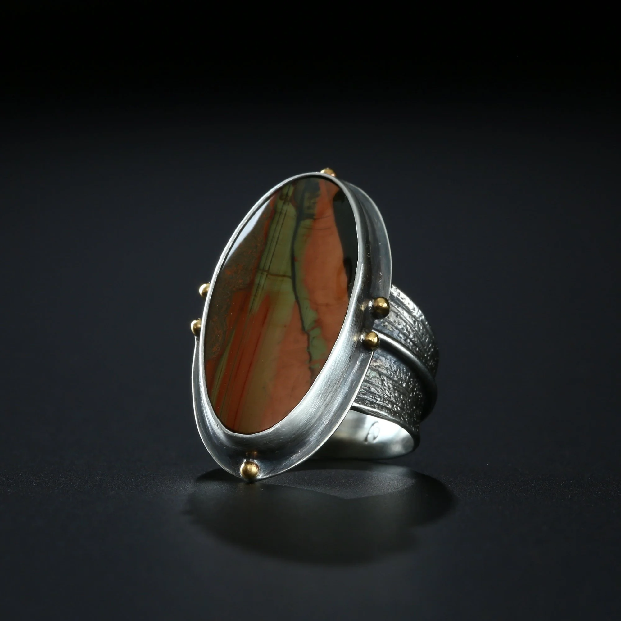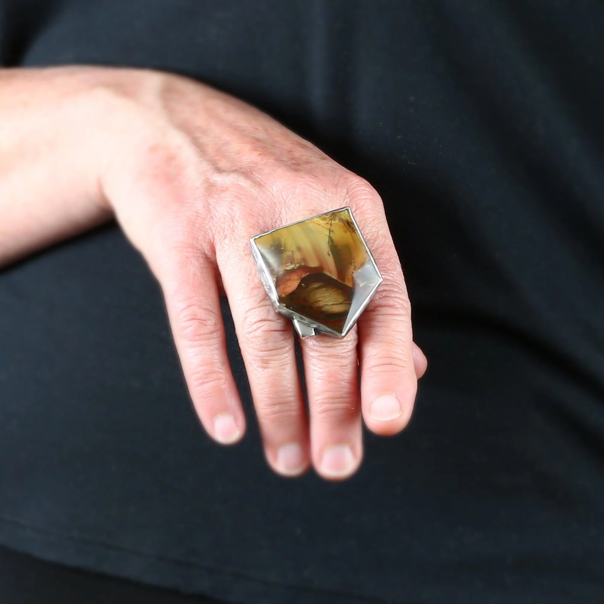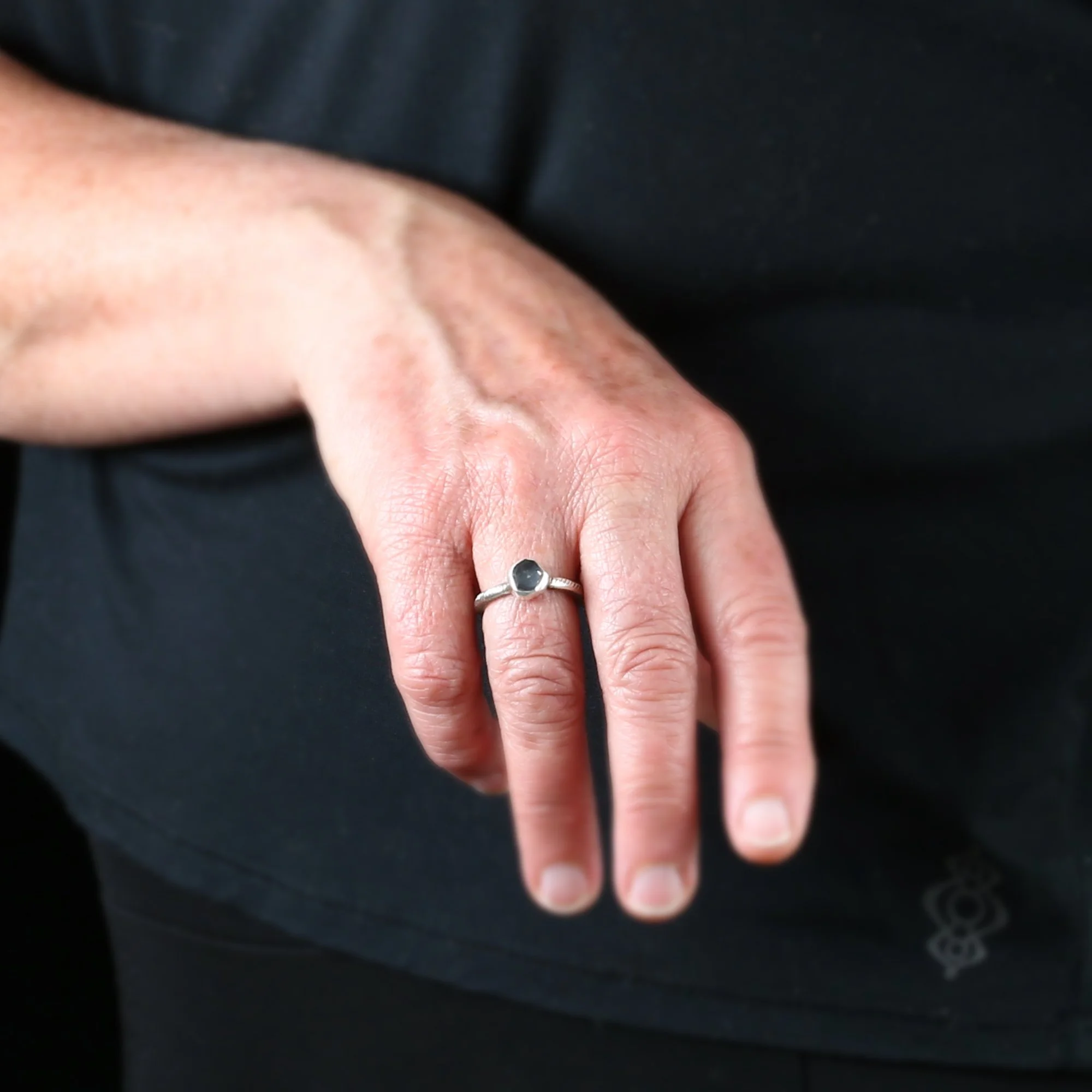 Our rings are fabricated one-of-a-kind creations. Each stone is carefully chosen and almost always totally unique. Using mainly sterling silver and 18k gold, we forge, form, saw, and solder all parts.